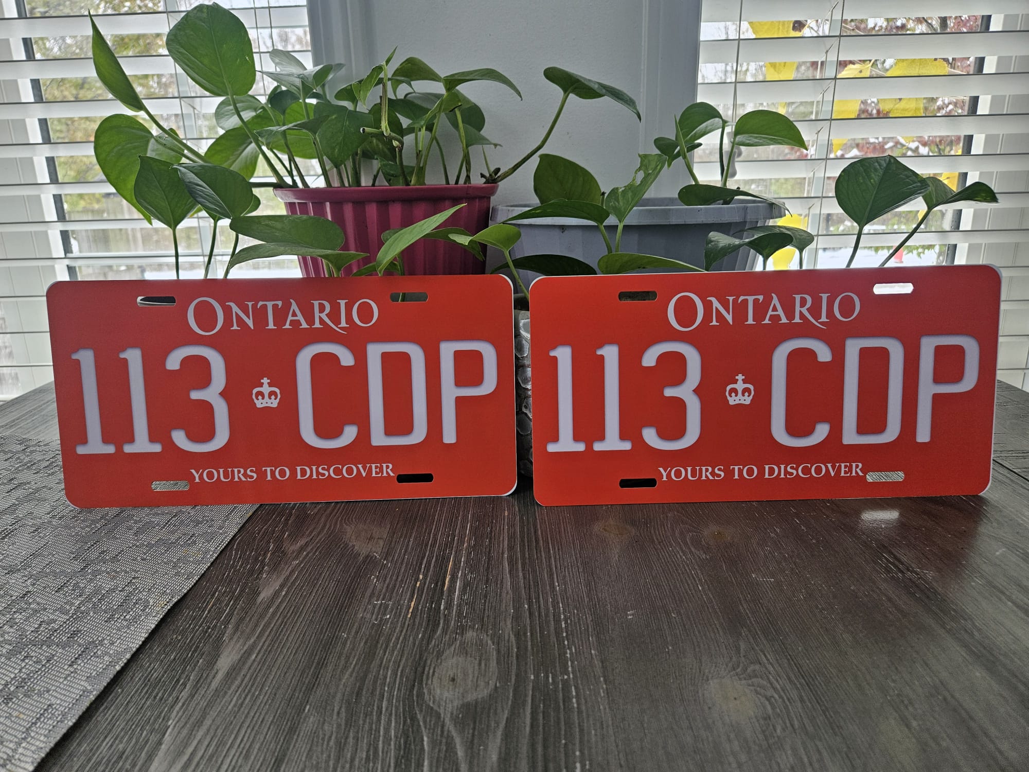 Bring your personalization to life with our Ontario Custom Colored License Plates. Choose your own background and font colors using HEX codes for exact accuracy. Add custom text and select a font style to create a truly unique plate. Perfect for gifts, displays, or personal collections.